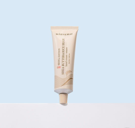 Mary&May Shea Butter & Rice Bran Hand Cream 50ml - Vyživující krém na ruce určený pro každodenní péči o suchou, namáhanou a dehydratovanou pokožku rukou.